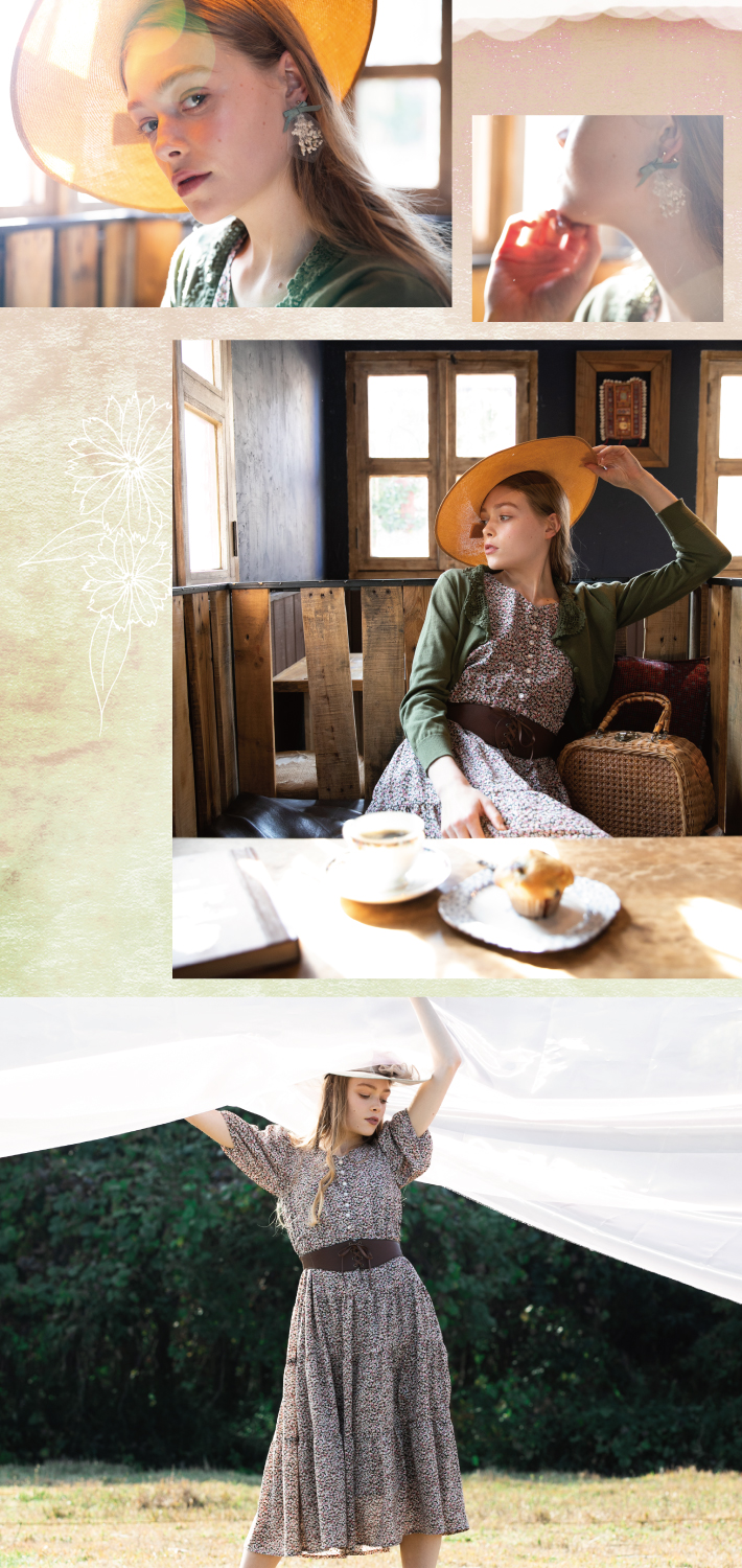 美しい田園避暑地の風景を舞台に、ブルーチェックのワンピースやコットンのロングドレス等、