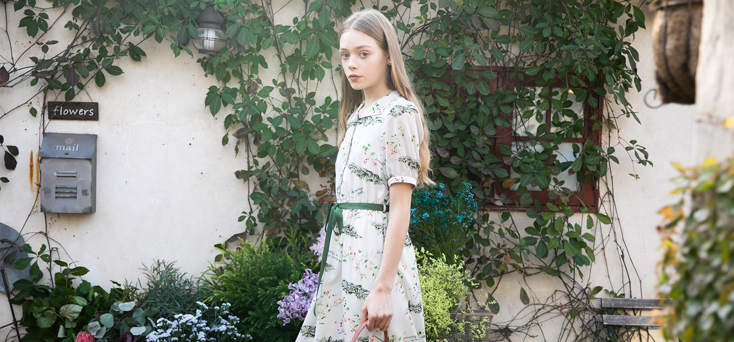 草花がいっぱいのシーンからインスパイアされた刺繍やプリントアイテムも豊富にラインナップ。