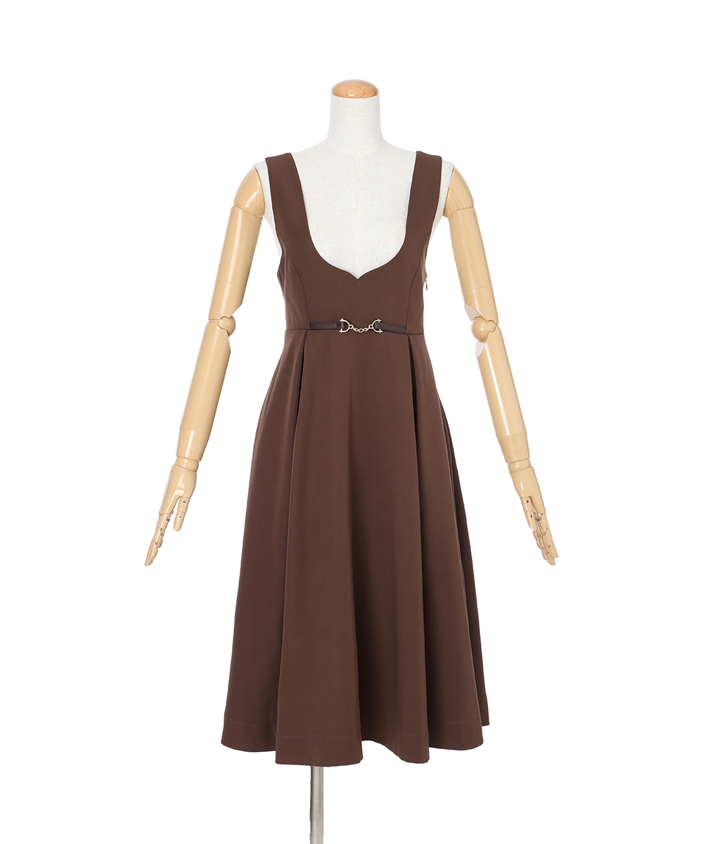 タイ付きのブラウスにジャンパースカート、