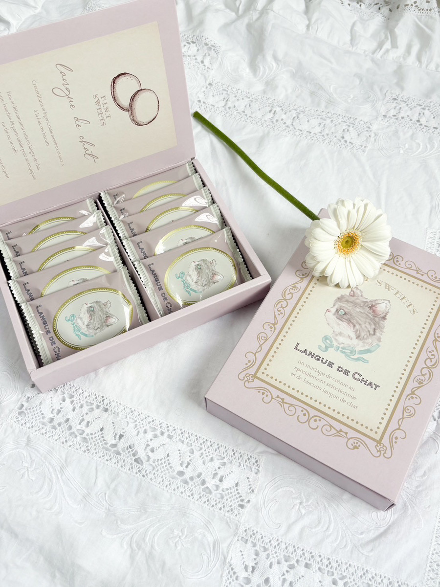 洋書をイメージした箱と、ネコのイラストがキュートなパッケージもポイント